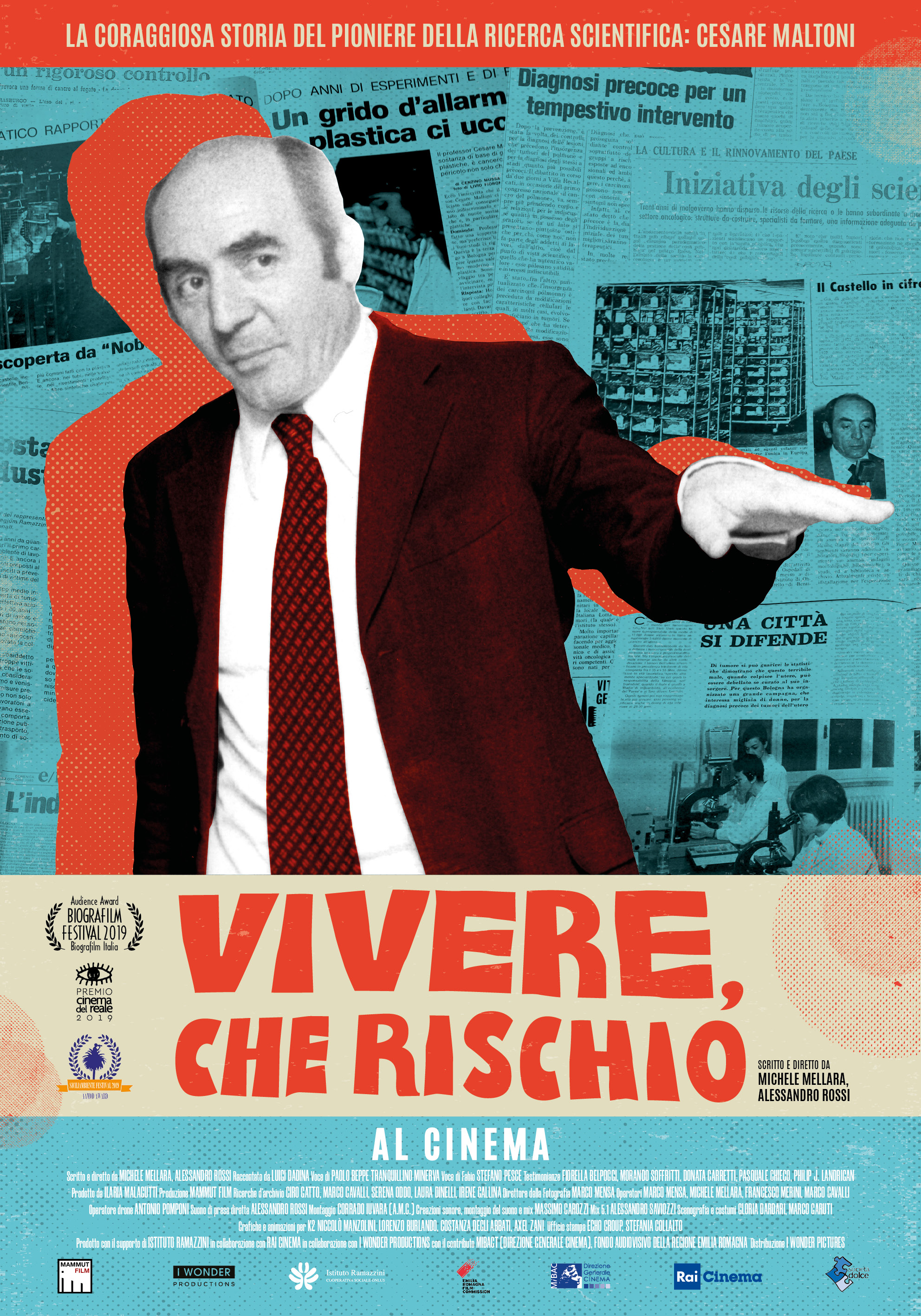 Il documentario VIVERE, CHE RISCHIO – La coraggiosa storia del pioniere della ricerca scientifica: Cesare Maltoni ritrae, attraverso immagini di repertorio e testimonianze, la figura di Cesare Maltoni, uno dei più brillanti scienziati di questo secolo: un pioniere nell’ambito della cancerogenesi ambientale e industriale, della prevenzione oncologica, della chemio prevenzione. Un uomo di scienza noto in tutto il mondo e dalle cui ricerche si è stabilita una prassi e una metodologia scientifica ancora oggi insuperata. VIVERE CHE RISCHIO – La coraggiosa storia del pioniere della ricerca scientifica: Cesare Maltoni mostra anche il privato di Cesare Maltoni, un uomo difficile e scomodo, e per questo condannato a essere isolato, marginalizzato e, dopo la morte nel 2001, in parte dimenticato. VIVERE CHE RISCHIO – La coraggiosa storia del pioniere della ricerca scientifica: Cesare Maltoni rende omaggio a un uomo capace di portare avanti con energia le sue idee e di sfidare, in nome della salute pubblica, poteri e convenzioni dell’epoca.
